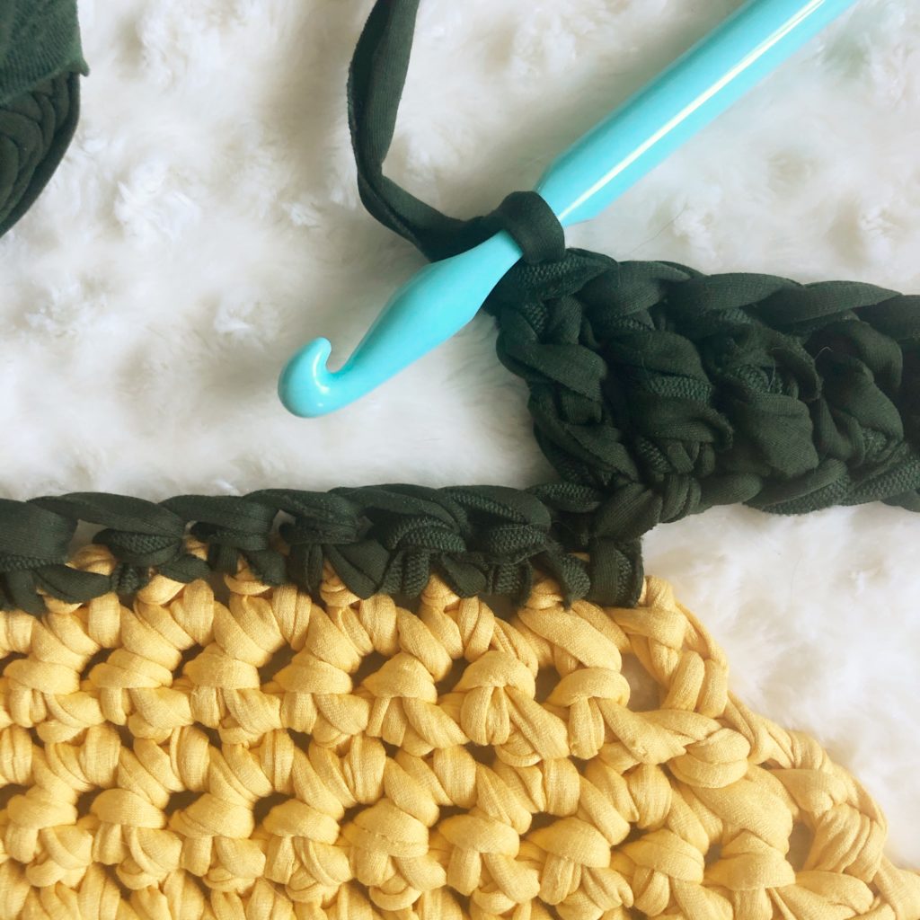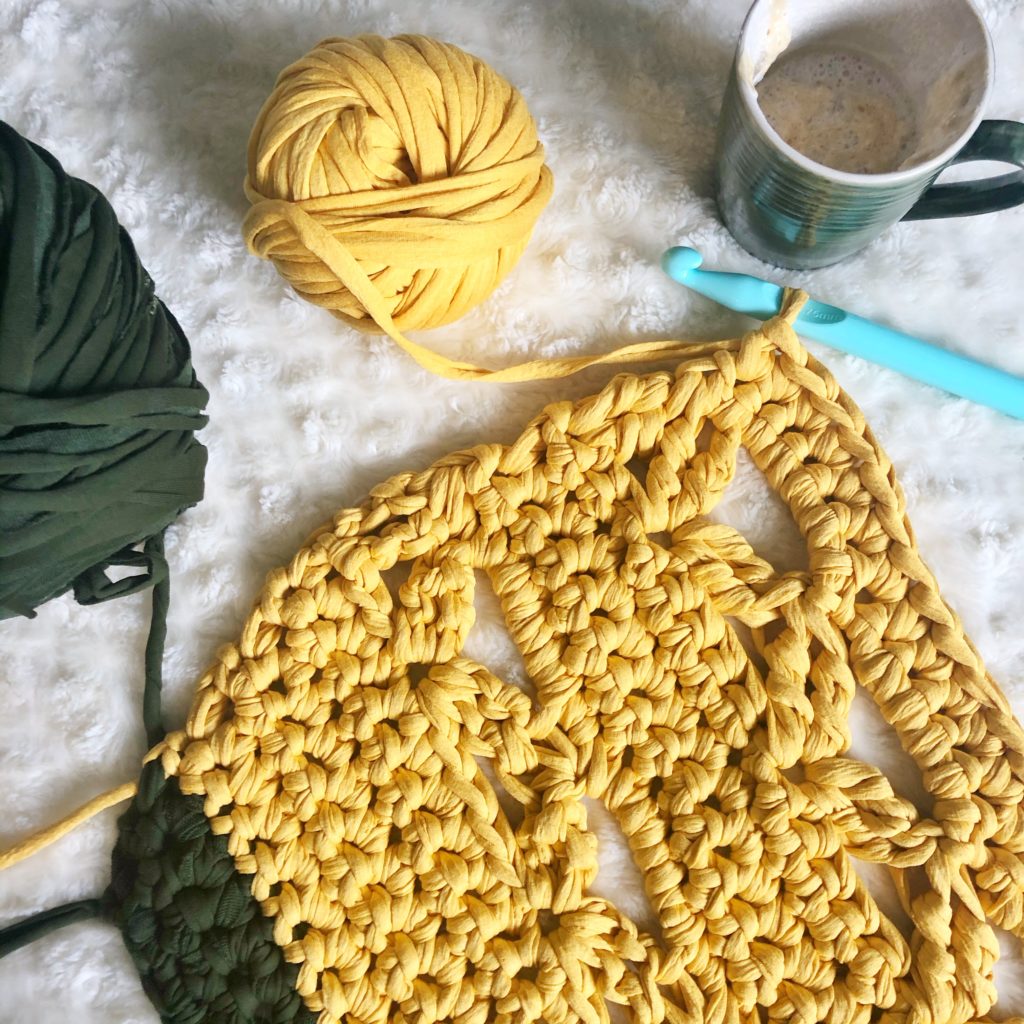 When Fox Yarn Co reached out to me and asked if I would design a project with their yarn, I was thrilled! It’s always exciting to be given the opportunity to collaborate with other designers, bloggers, and companies. I didn’t know exactly what I would design with their yarn because, to be honest, I did not have much experience working with t-shirt yarn, but I did know one thing. It. Would be. PINEAPPLE-Y! So I ordered the yellowest yellow and the greenest green I could find on their website. “Bring on the pineapple vibes,” was my only thought.